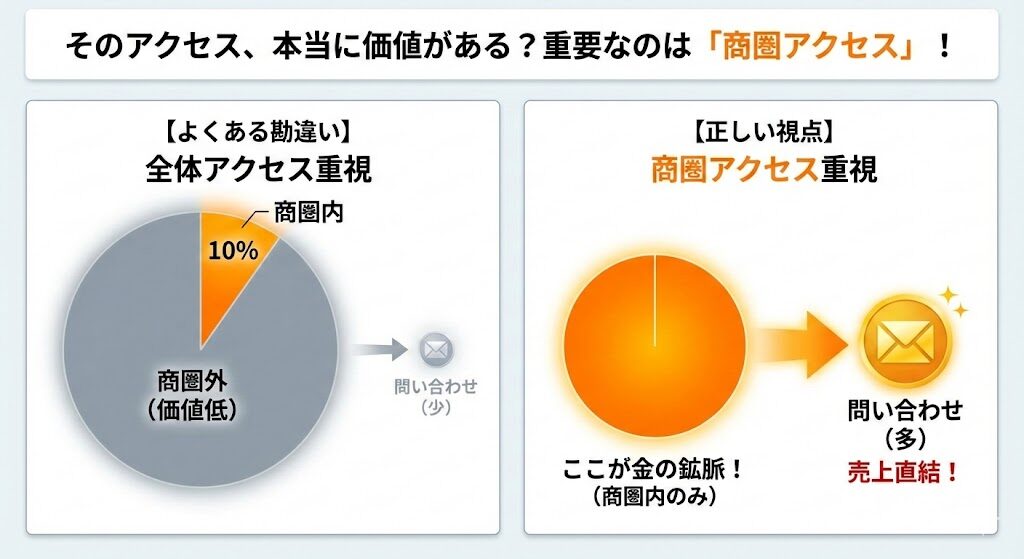 コラム 2025年12月26日 WEBサイトに集客出来ているのに問合せに繋がらないのは商圏アクセスが足りてない WEBサイトを運用している時に見ている指標はなんですか? もう少し詳しく見る人は この辺りを見ているのではないですか? この中で特に注目しないといけないのは「地... Read More